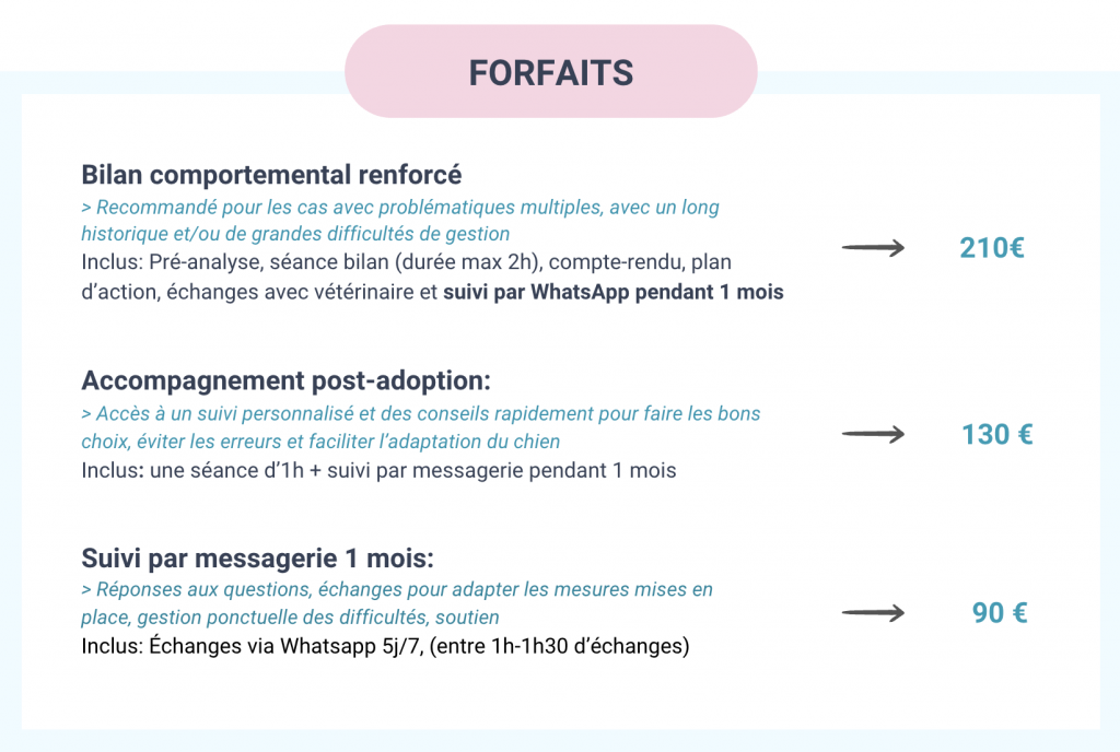 Réduction de -15% pour les adoptants d’associations partenaires sur le premier rendez-vous et les forfaits.